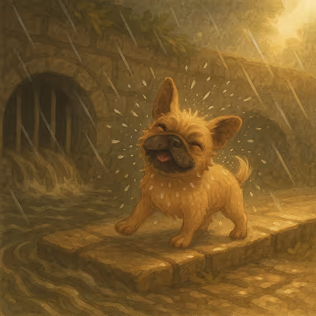 Fritz snorts, wedged against a barred drain, waterline creeping up his chest with every passing second.