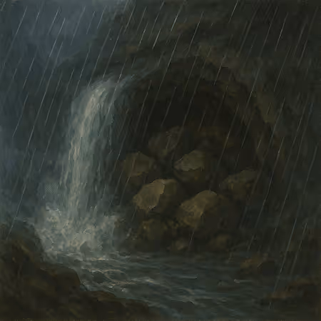 Spray filled the cave where Yuki waited, doorway shrinking with each tumble of rock and water.